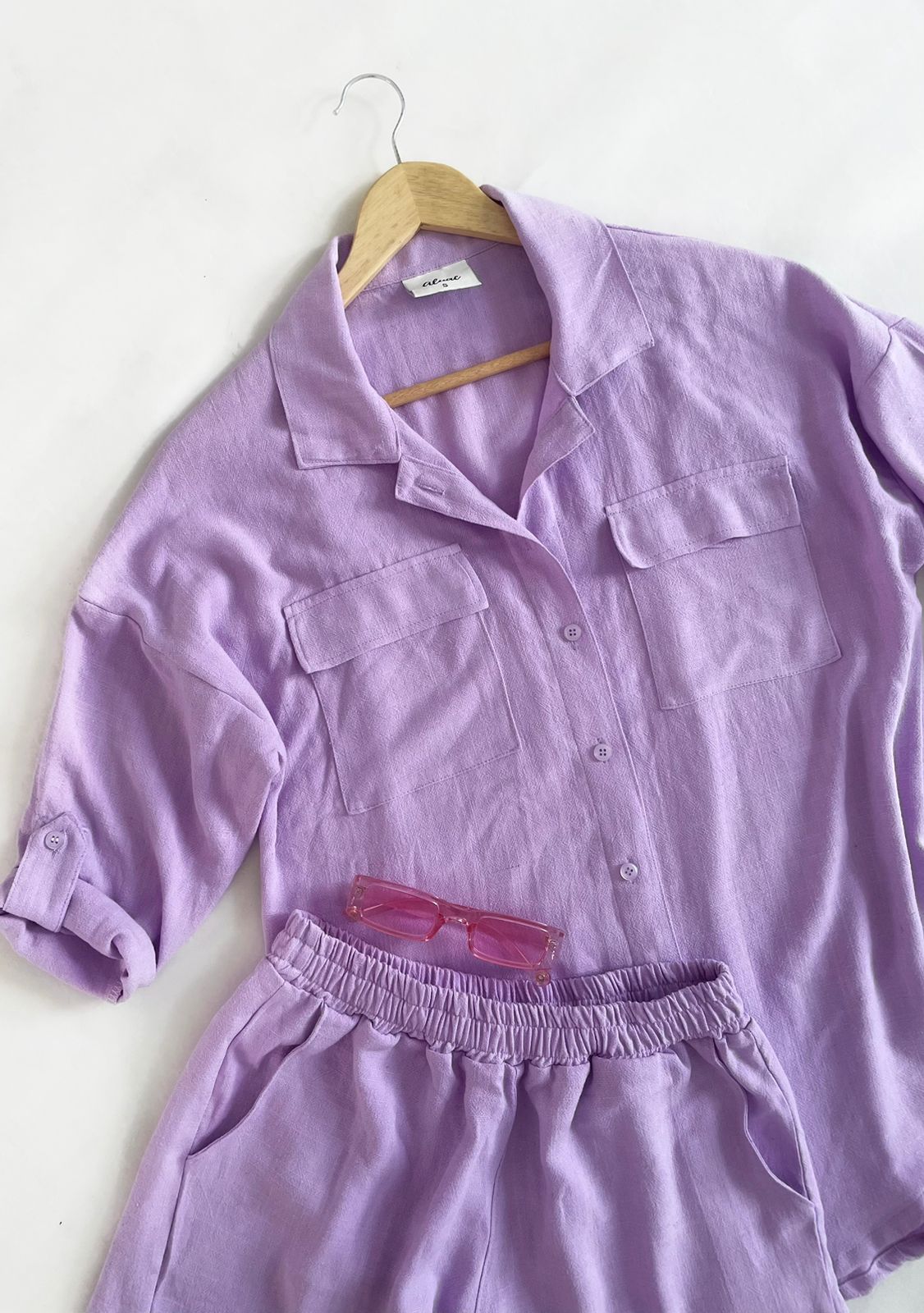 El set incluye 1 camisa manga 3/4 con regulador con botón para hacer una manga más corta y 1 short con elástico en la cintura.
